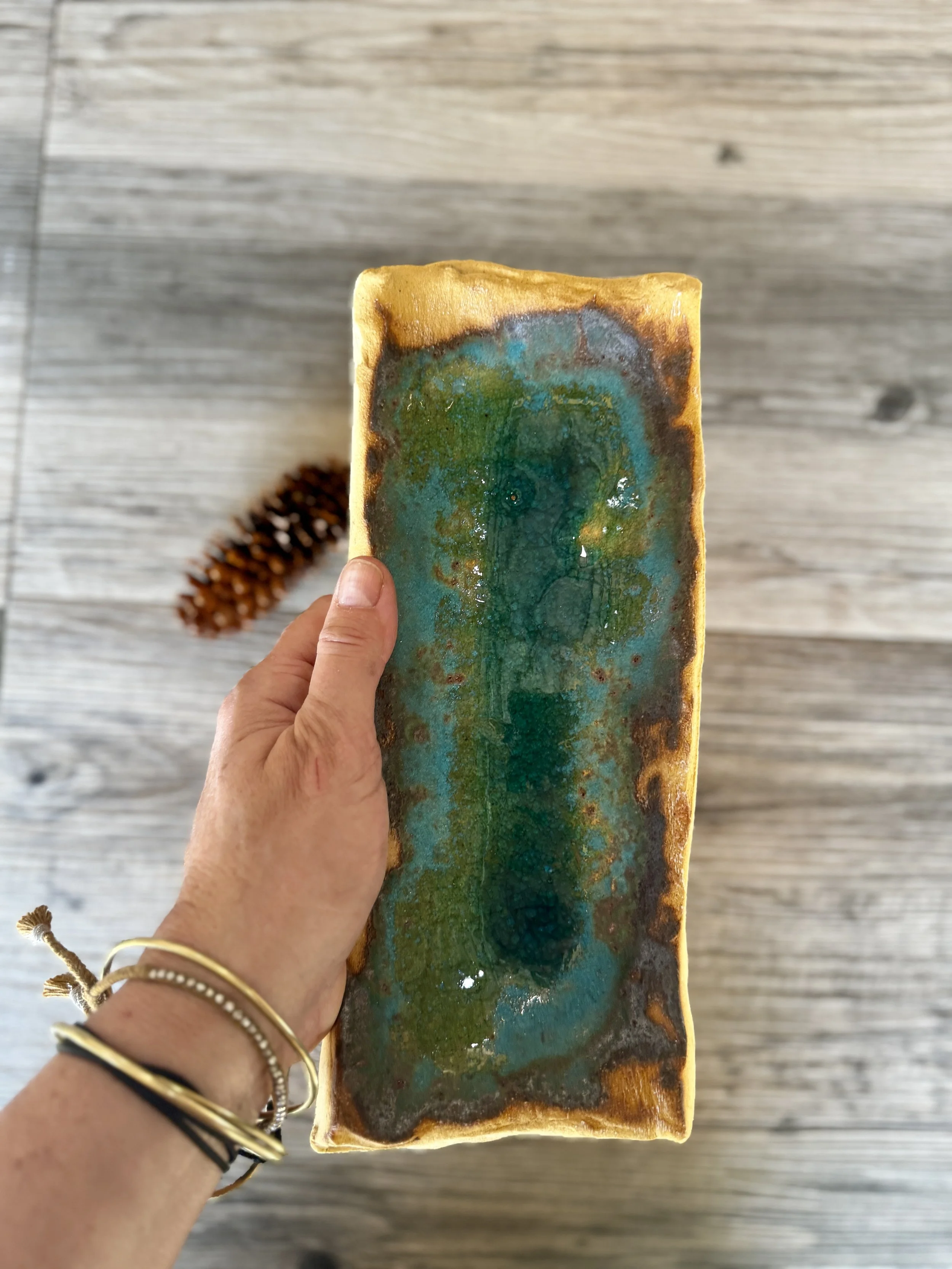 Sculptural Ceramic tray Turquoise tray